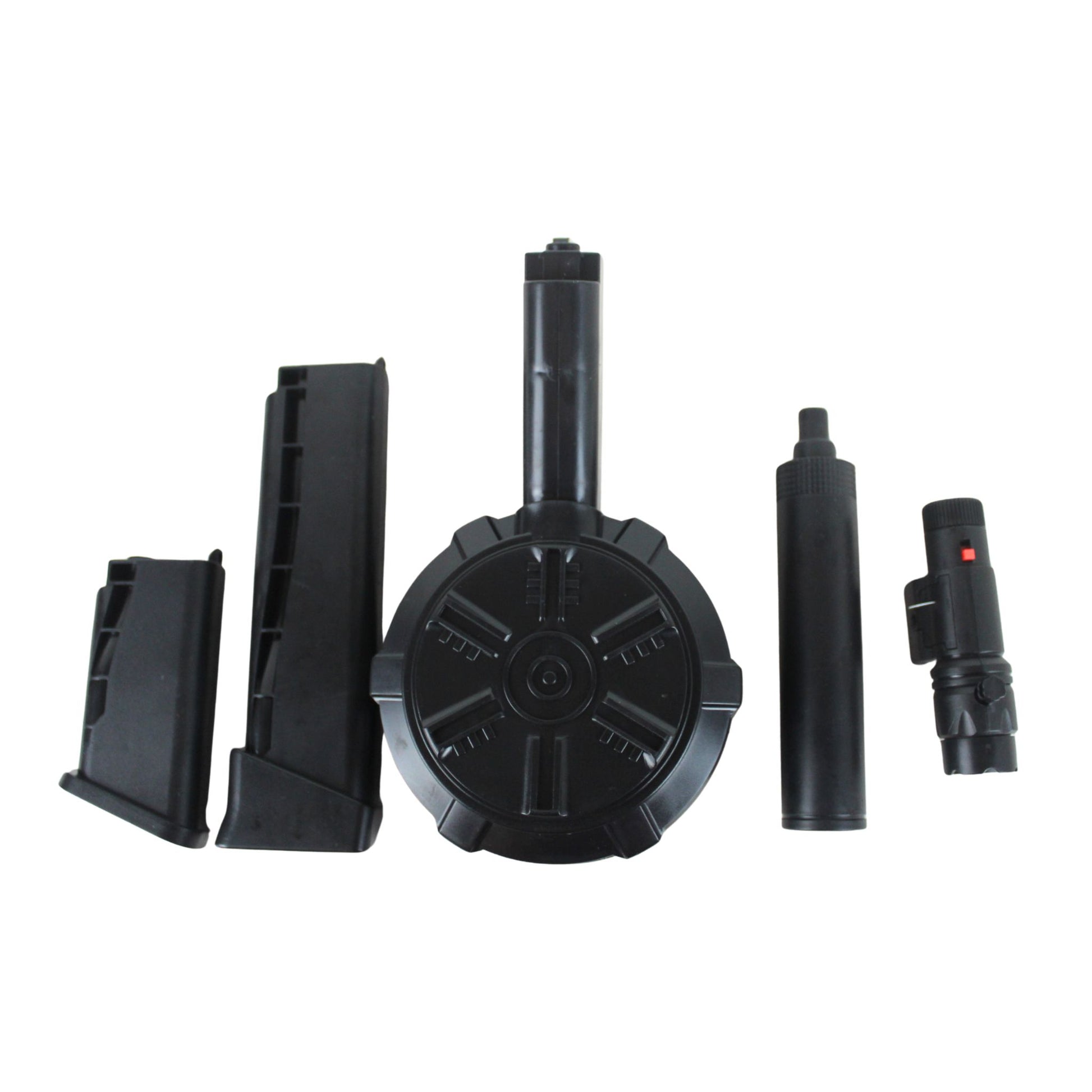 V balení toho najdeš hromadu! 3 zásobníky (krátký, prodloužený a bubnový), tlumič, kolimátor a svítilnu. Díky tomu si můžeš hračku vybavit tak, jak se ti líbí nejvíc.