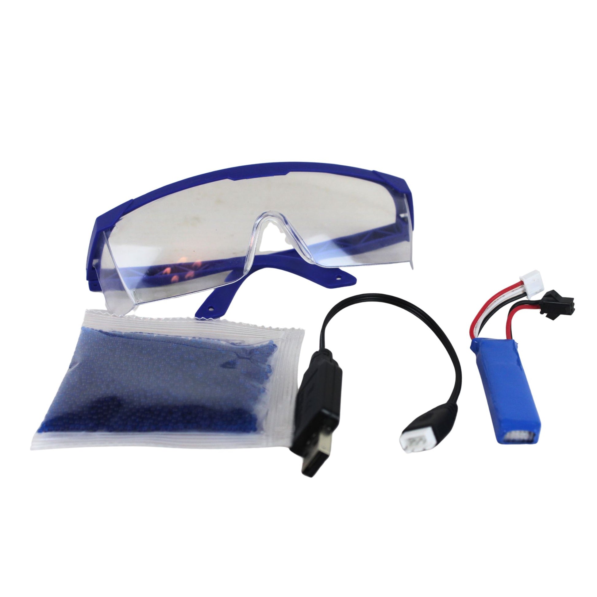 S Glockem máš cestu k Gel Gunům jednoduchou! V balení najdeš základní příslušenství. Ochranné brýle, baterie, nabíječka i vzorek kuliček. Pokud to ale myslíš vážně, doporučujeme kuličky přikoupit do zásoby.