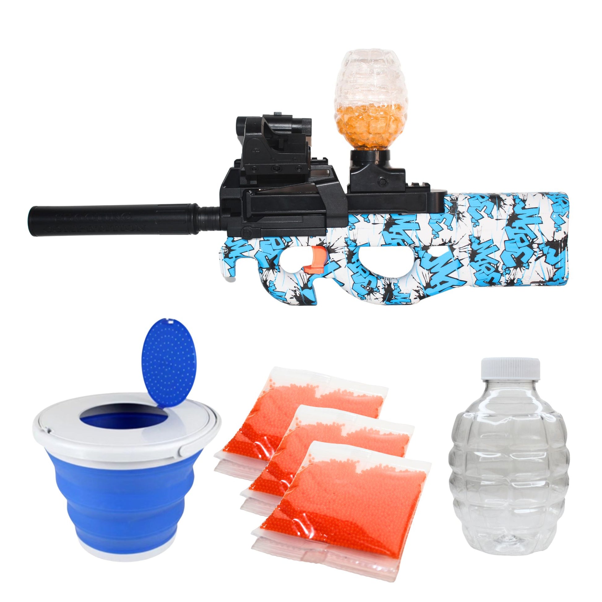 Mit Gel Guns werden Sie jede Menge sicheren Spaß haben! Die Gelbällchen zerplatzen beim Aufprall und hinterlassen dank ihrer wasserbasierten Zusammensetzung keine Rückstände. Außerdem besteht bei der Gelpistole keine Gefahr, dass Glas zerbricht.